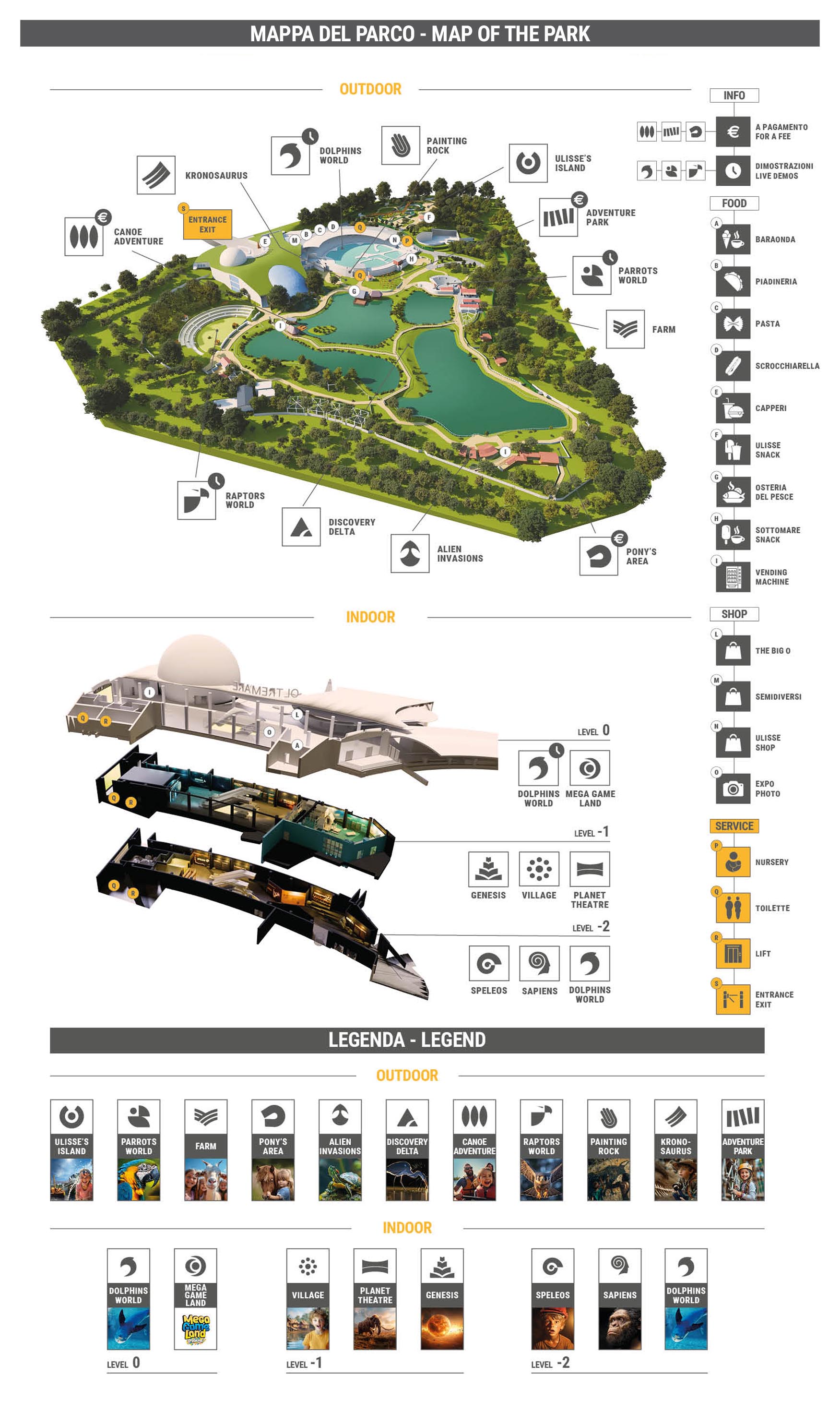 Oltremare é il mondo nella quale gli elementi della natura diventano occasione di scoperta, gioia, educazione e divertimento per grandi e bambini. Divertitevi a scoprire il parco osservando come sono posizionate le varie attrazioni nel mondo unico di Oltremare, un luogo divertente, avventuroso e indimenticabile.