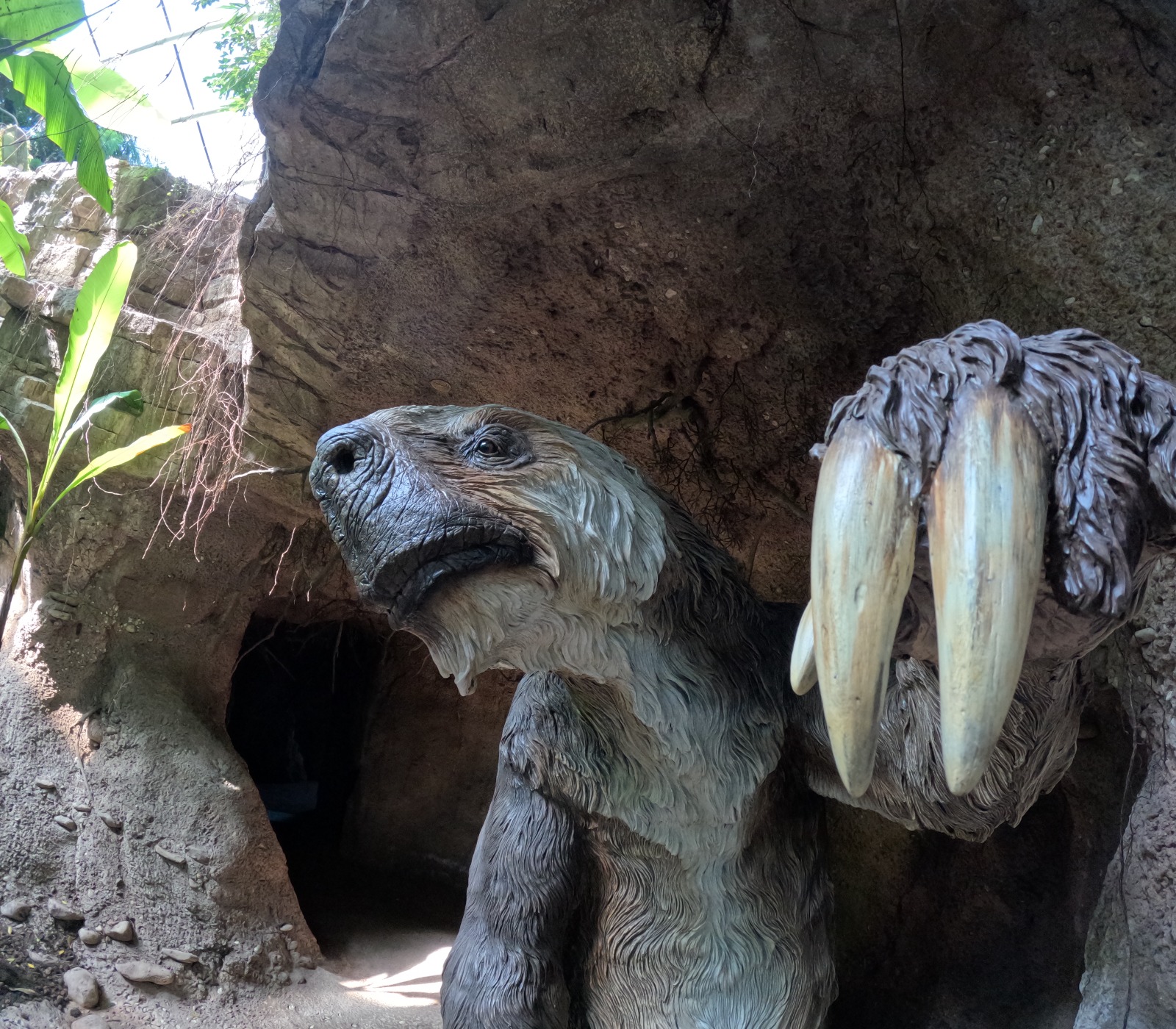Il Bradipo gigante, con la sua stazza imponente e i suoi artigli possenti, era un erbivoro pacifico che si nutriva di foglie e frutti. Chiamato Megalonix Jeffersonii, era un animale di dimensioni impressionanti ma era sorprendentemente agile e capace di scavare. Questa abilità lo portava a cercare rifugio e cibo nelle grotte, lasciando tracce del suo passaggio. Le grotte sudamericane conservano ancora oggi segni evidenti dell'attività del Megalonix: graffi profondi sulle pareti rocciose, impronte delle sue potenti zampe e cumuli di terra smossa. Questi segni, in un primo momento, furono attribuiti ai primi abitanti umani delle grotte. Per molto tempo, gli scienziati rimasero perplessi di fronte a questi segni, non riuscendo a conciliare la loro dimensione e profondità con le capacità dei primitivi. Grazie a studi più approfonditi, si comprese che i veri artefici di questi scavi erano i Bradipi Giganti. La loro estinzione, avvenuta circa 10.000 anni fa, è probabilmente legata alla caccia da parte dei primi uomini.