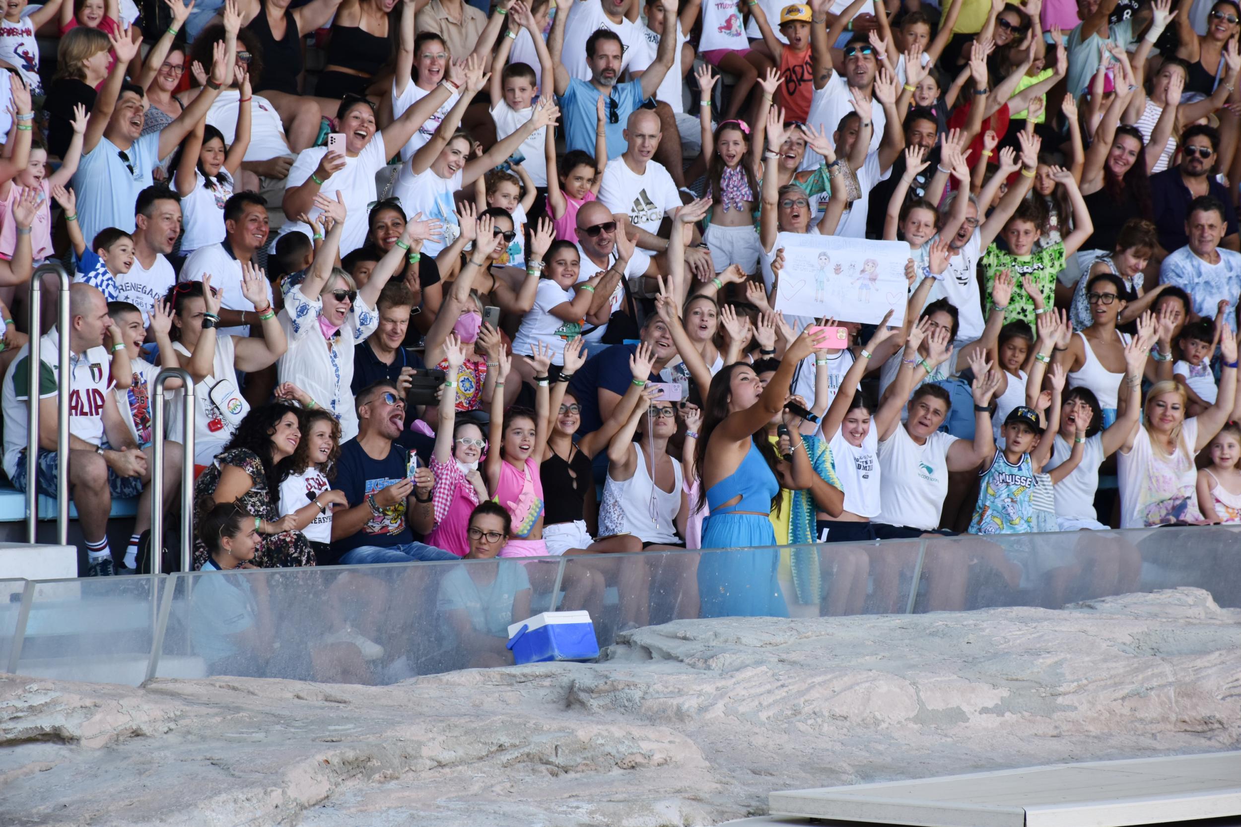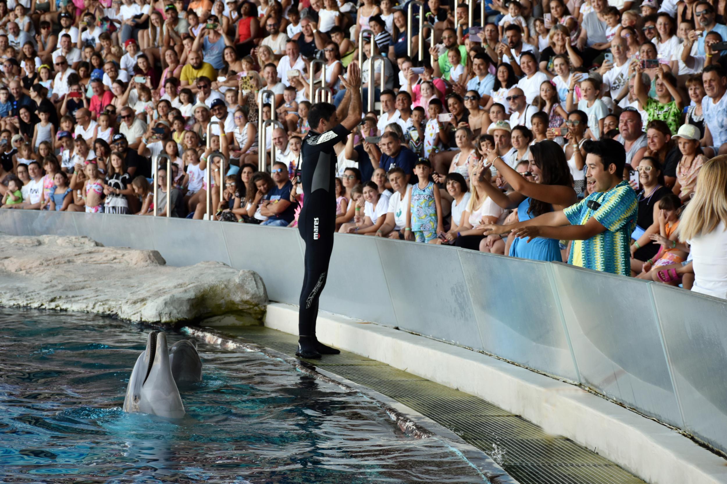 Erick e Dominick hanno coinvolto il pubblico nella laguna di Ulisse presentando i loro successi, prima di incontrare e scoprire curiosità sulla belal famiglia di delfini, durante l’approfondimento quotidiano ‘Delfini, lo spettacolo della natura’. Poi le famiglie sono state coinvolte all’Oltremare Theatre in un momento di divertimento e incontro con i due creator, che hanno voluto realizzare il selfie più grande d’Italia con ben 500 persone con smartphone alla mano per immortalare l’incontro con i DinsiemE.