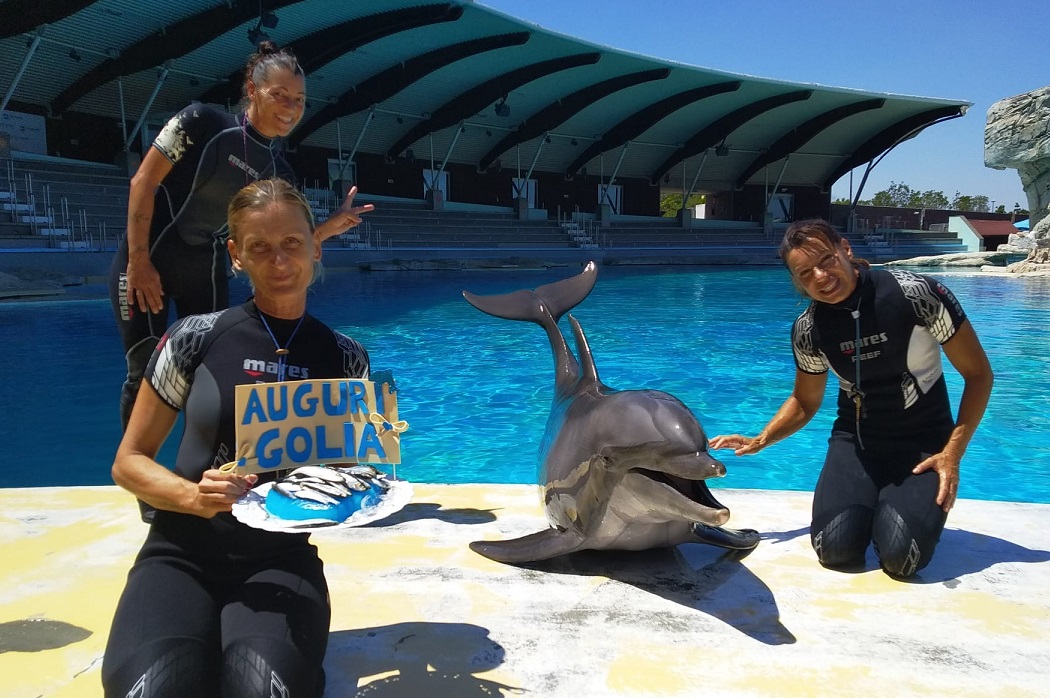 Ventisette anni per il delfino maschio della Laguna di Ulisse, Golia che pesa 210 kg e d è lungo circa 2 metri. Ieri il pubblico di Oltremare lo ha festeggiato nel pomeriggio, durante l’approfondimento ‘Conosci i delfini’ con un appuntamento speciale di sensibilizzazione ambientale.