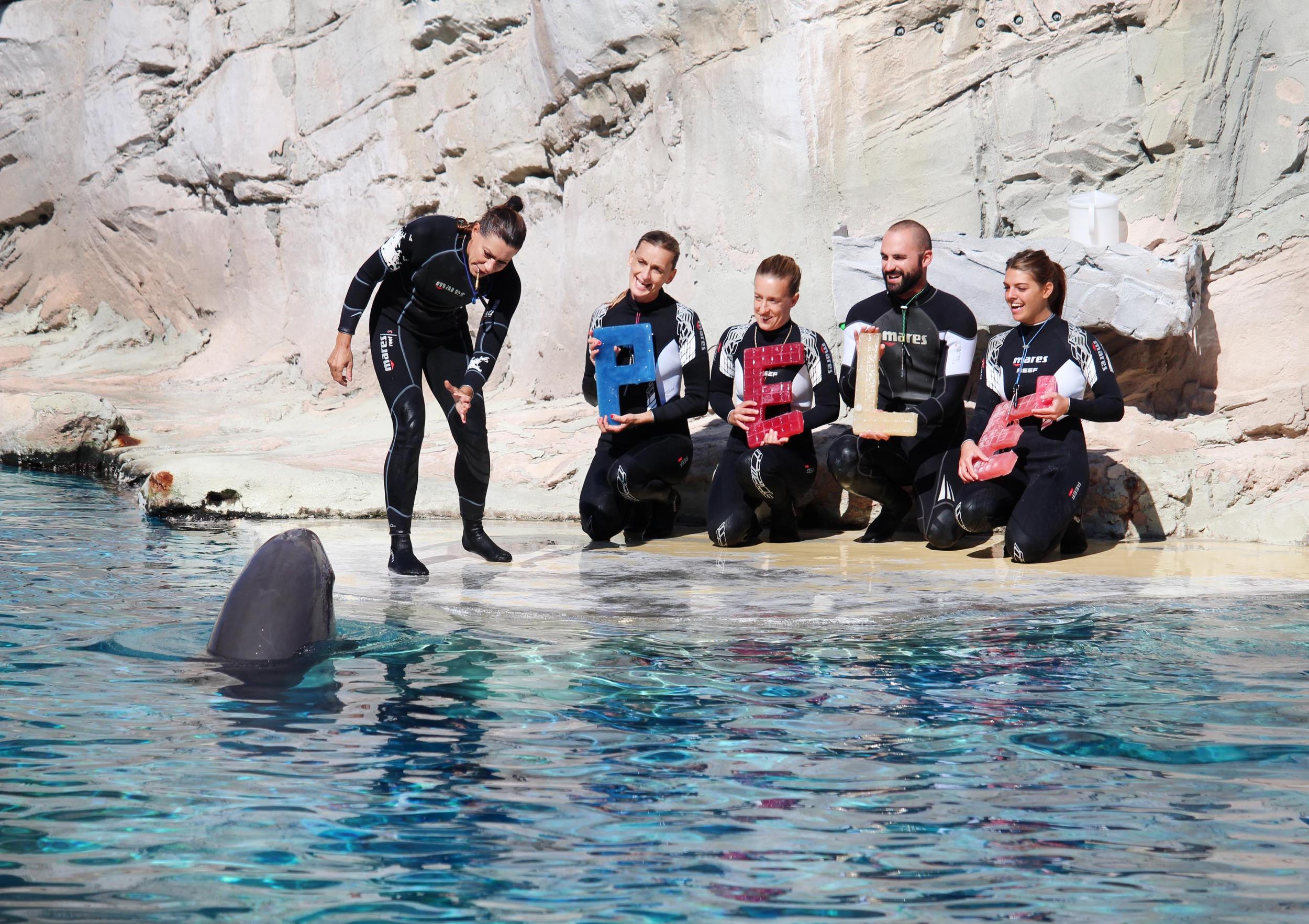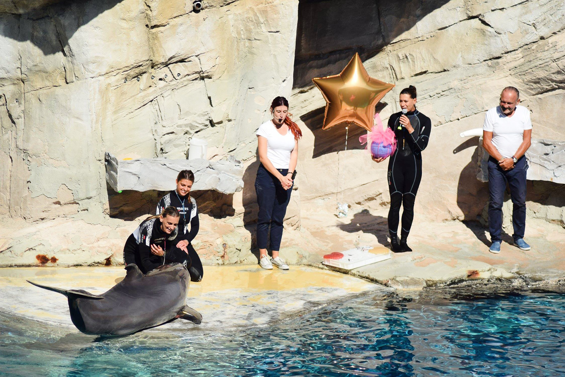 “Ho la fortuna di essere accanto a Pelé da 29 anni - racconta Barbara Marchiori, capo addestratrice della Laguna di Ulisse - E’ un delfina eccezionale, è l’equilibrio del gruppo, la più anziana ma piena di energia. Sia per noi addestratori che per la sua famiglia di delfini è un punto di riferimento. Noi siamo onorati di poterle stare accanto tutti i giorni”.