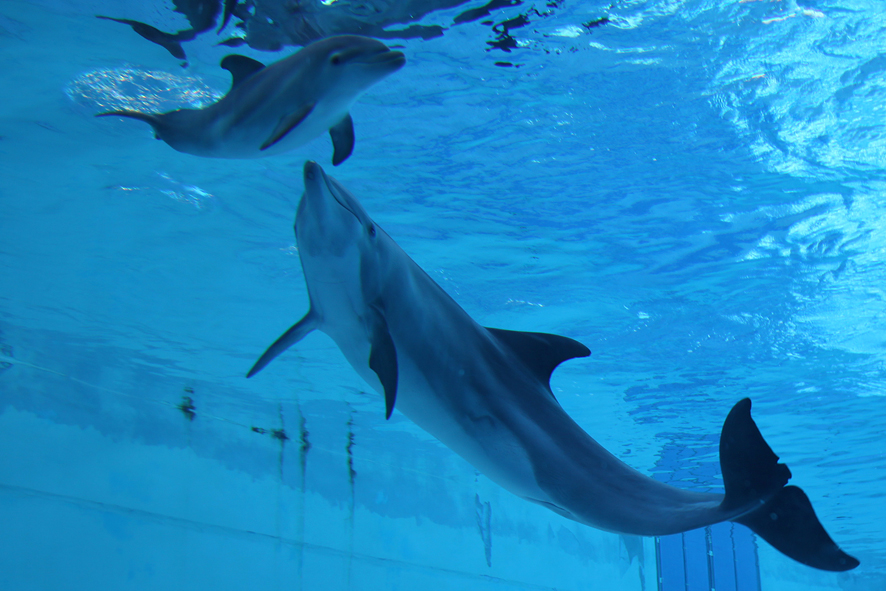 Cresce il cucciolo di tursiope, nato da mamma Blue, nella grande Laguna di Oltremare il 9 agosto scorso alle ore 20.59. Il piccolo delfino di sesso maschile, che alla nascita era circa 20 kg di peso per 110 cm di lunghezza, in soli 20 giorni ha raggiunto i 30 kg ed è lungo 125 cm.