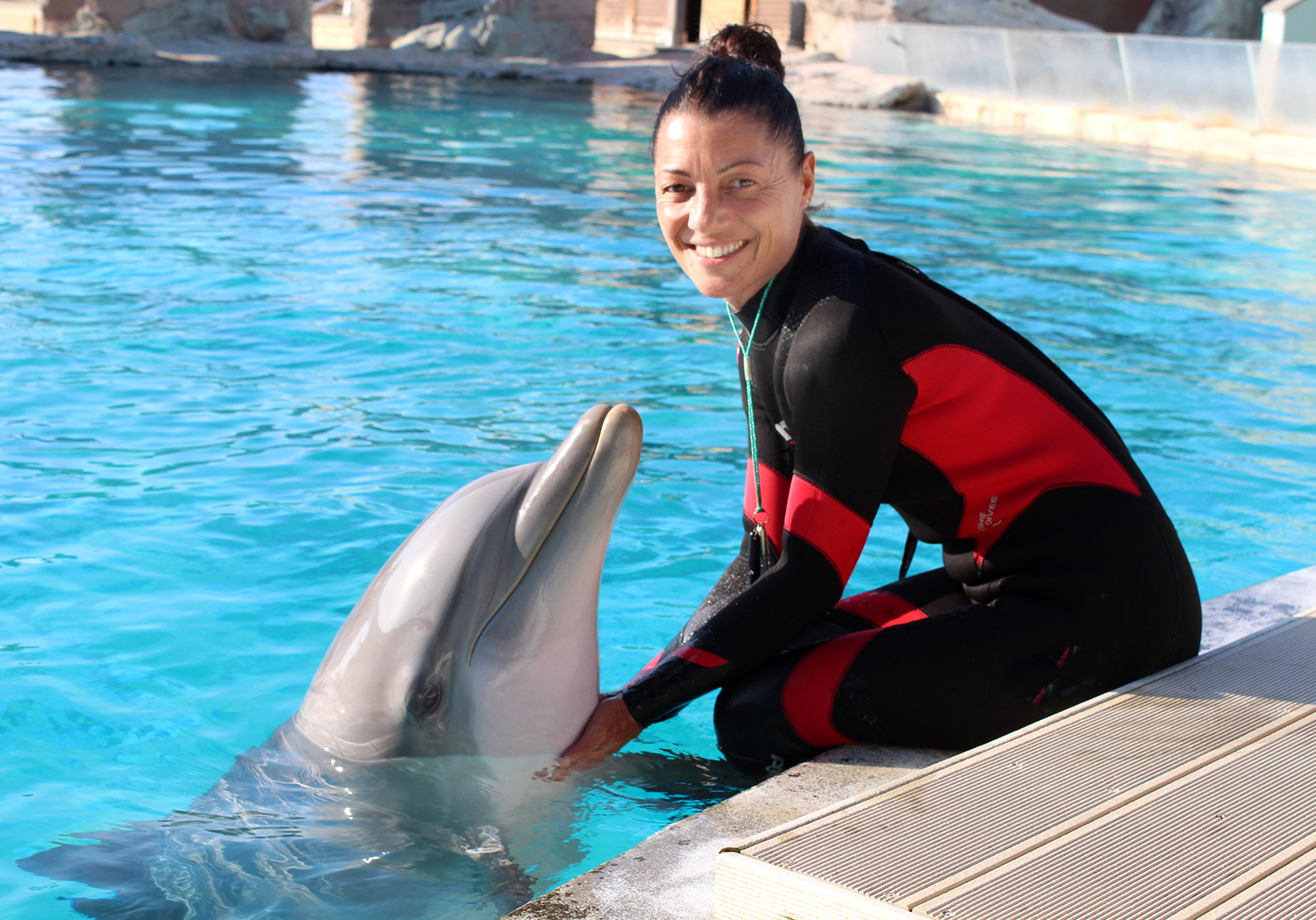 “Con tutto il team di addestratori, biologi e veterinari, garantiamo un elevato standard qualitativo dei nostri tursiopi, sia per la vita sociale degli esemplari ospitati che per la valenza di sensibilizzazione dei visitatori alle tematiche ambientali _ racconta Acciai _ Gli animali vivono con noi da anni e ci riconoscono. Passiamo con loro tanto tempo, tutti i giorni e tutto l’anno. Sono la nostra famiglia. Ci affezioniamo ad ognuno di loro. Il mestiere dell’addestratore è affascinante ma richiede una grandissima passione. Senza è davvero difficile. I sacrifici sono tanti, come la disponibilità, ma non lo cambierei con niente al mondo. Non abbiamo i consueti orari di lavoro: l’unica cosa che i delfini ci chiedono è dedicare loro tanto tempo. La qualità del nostro lavoro corrisponde alla qualità della loro vita. Questo è un legame speciale, unico”.