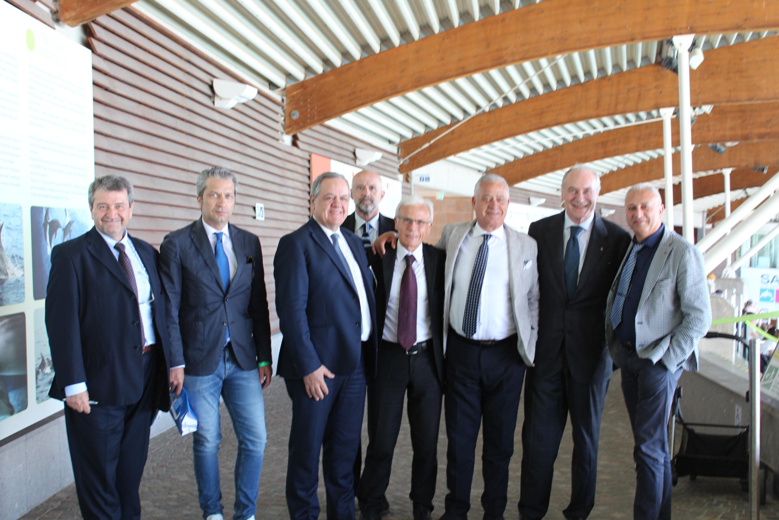 I partecipanti dopo il convegno nell'Oltremare Theatre, hanno partecipato anche all'appuntamento pomeridiano 'Delfini - Lo spettacolo della natura'.