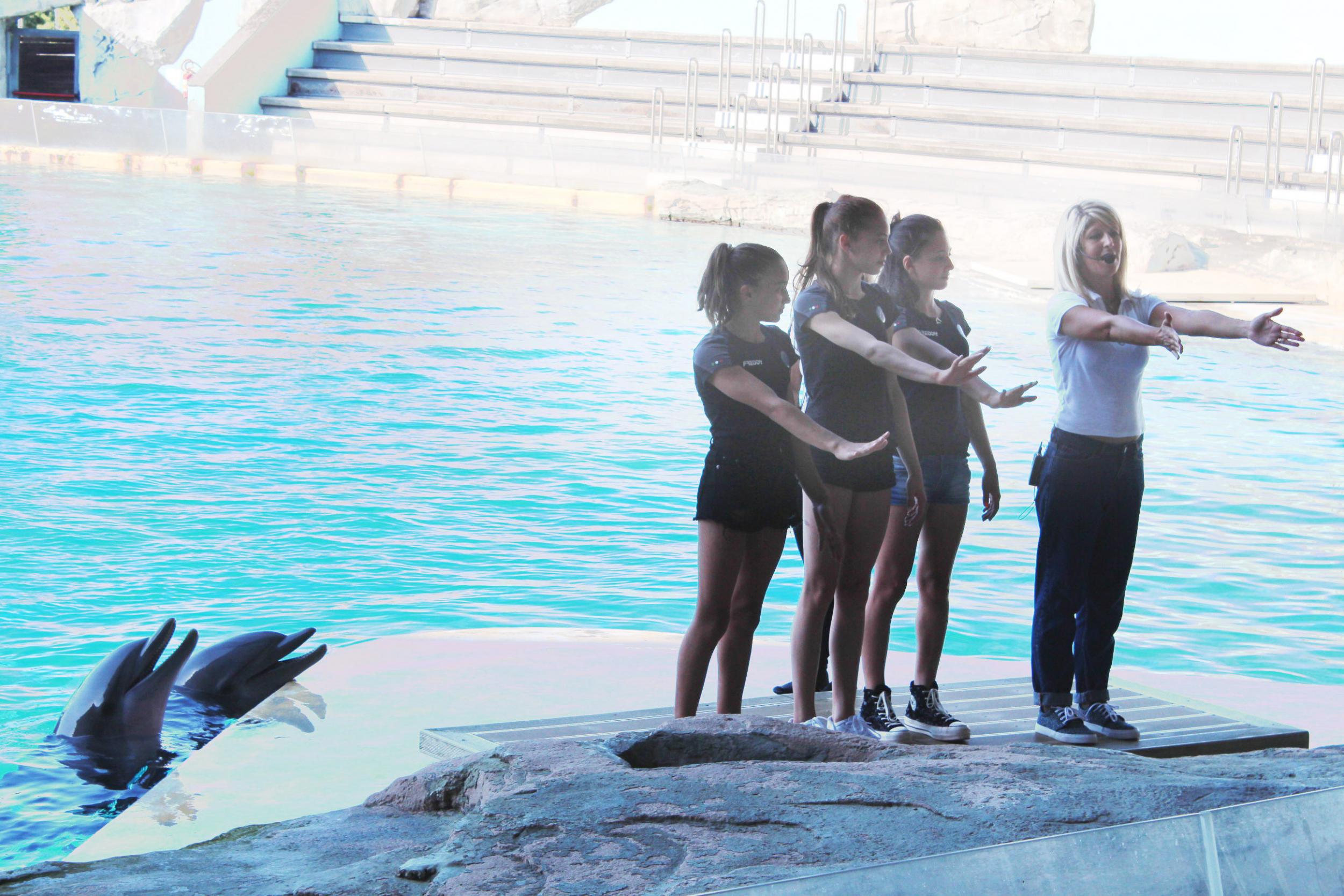 Proprio durante l’appuntamento pomeridiano di ‘Delfini – Lo spettacolo della natura’ c’è stato un ‘incontro ravvicinato’ con addestratori, il piccolo Taras, nonna Pelè e le altre femmine di tursiope per Veronica Mandriota, India Bandiera e Chiara Vincenzi, che hanno partecipato quest’anno ai Campionati del Mondo e ai Giochi olimpici Europei Juniores. Le tre ragazze hanno fatto danzare i delfini e si sono divertite a osservare i tursiopi da vicino, con anche un piccolo ‘gavettone’ finale.
