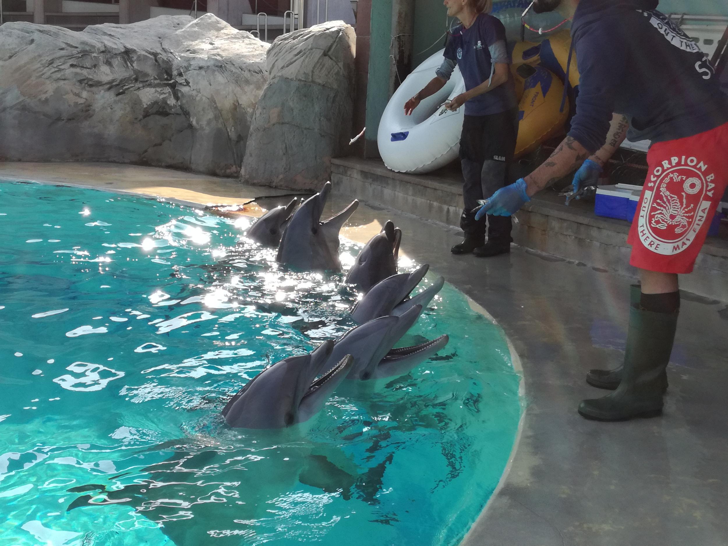Il giorno del suo arrivo, dopo poco meno di un’ora, le è stata data la possibilità di unirsi al gruppo di femmine Pelé, Candy, Blue, Cleo e al piccolo Taras (di tre anni). Socievole e già curiosa, Mia ha instaurato un ottimo rapporto con tutti, in particolare con Cleo e Pelé che con i suoi 54 anni è la “nonna” di tutta la famiglia riccionese dei tursiopi.