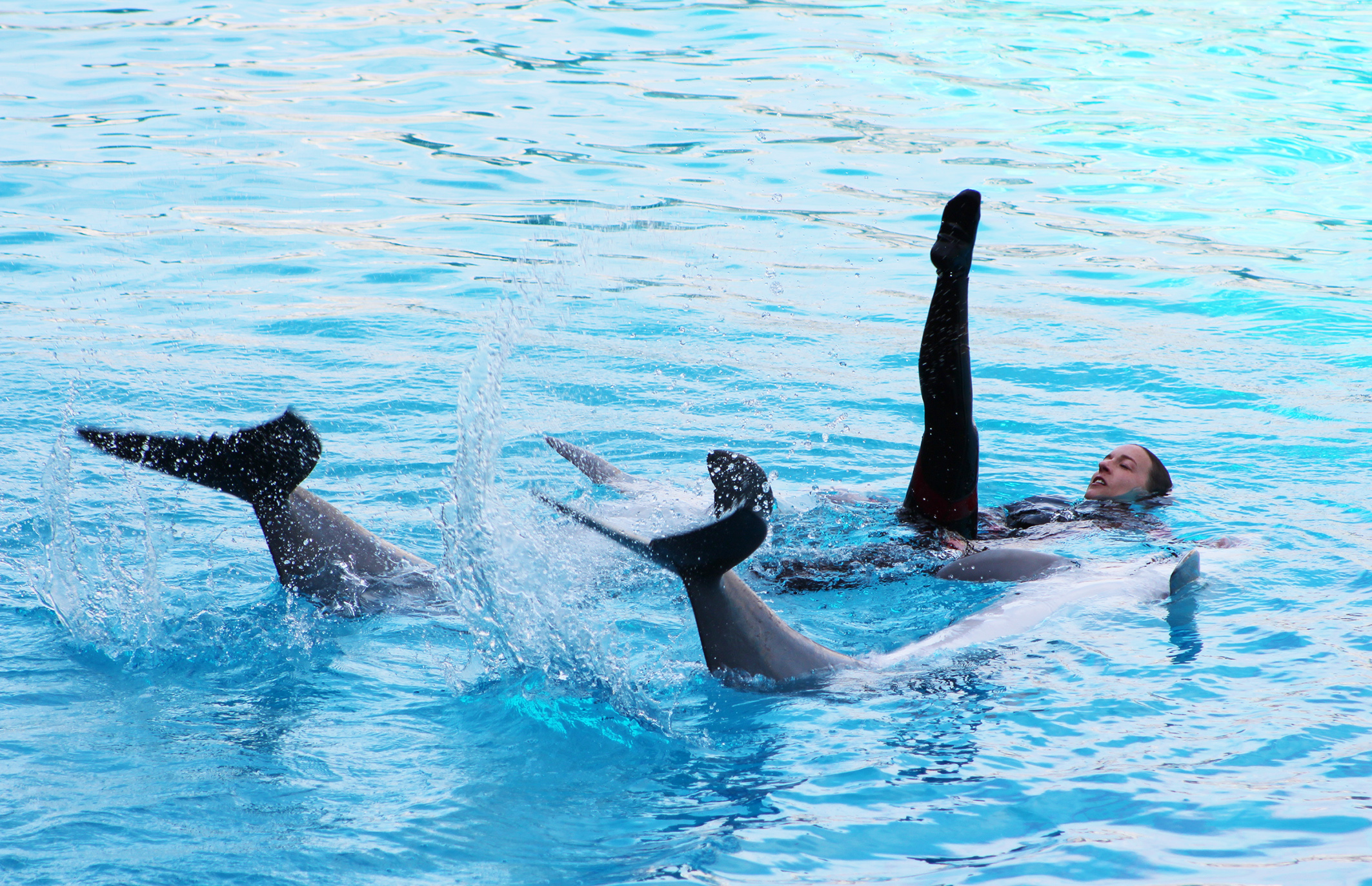 La nuova delfina Mia, Ulisse e il piccolo Taras, già diventati inseparabili compagni di giochi, sono le star della Laguna dei delfini più grande e bella d’Europa.