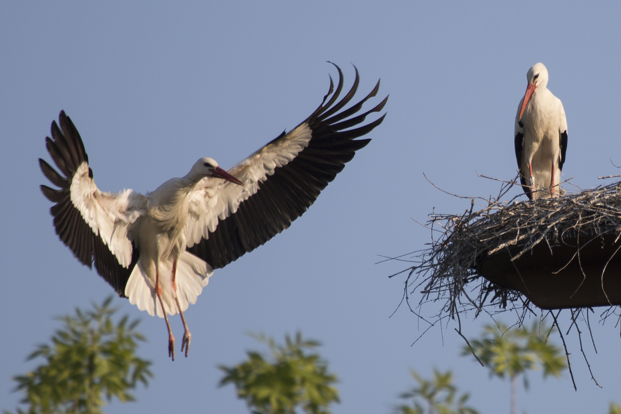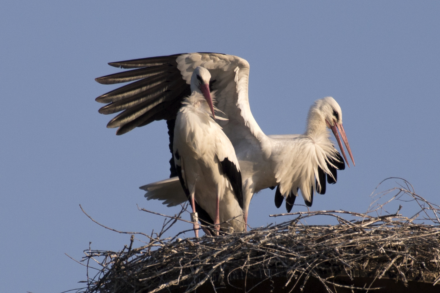 Lo staff del parco si è accorto qualche mese fa che la coppia stava preparando un nuovo nido, sopra il palo più alto dell’area laghetto del Delta, a un’altezza di 30 metri. Ramo dopo ramo, la coppia ha costruito un luogo accogliente largo oltre un metro e sono arrivate le uova, covate a turno, da entrambe le cicogne per 35 giorni.