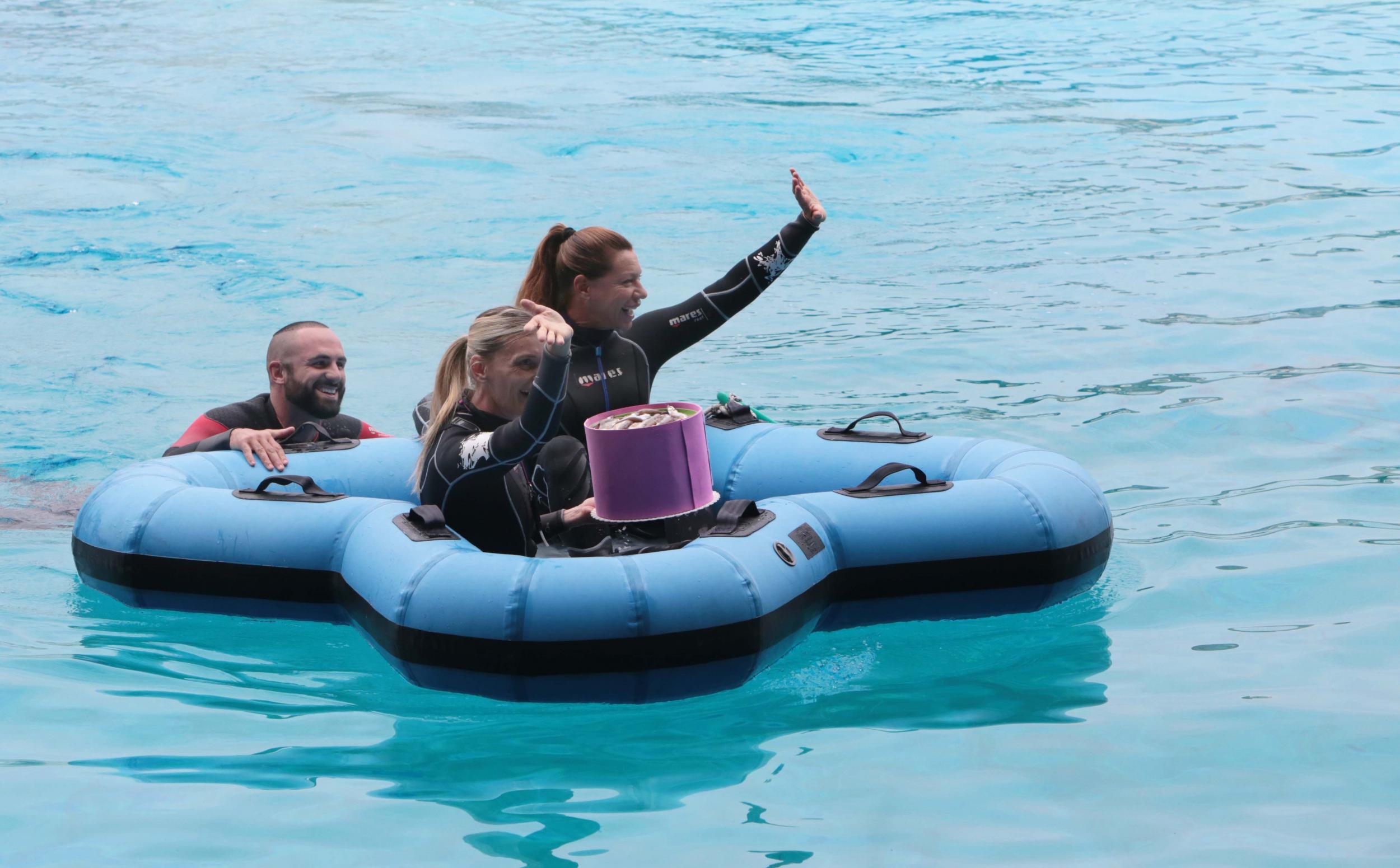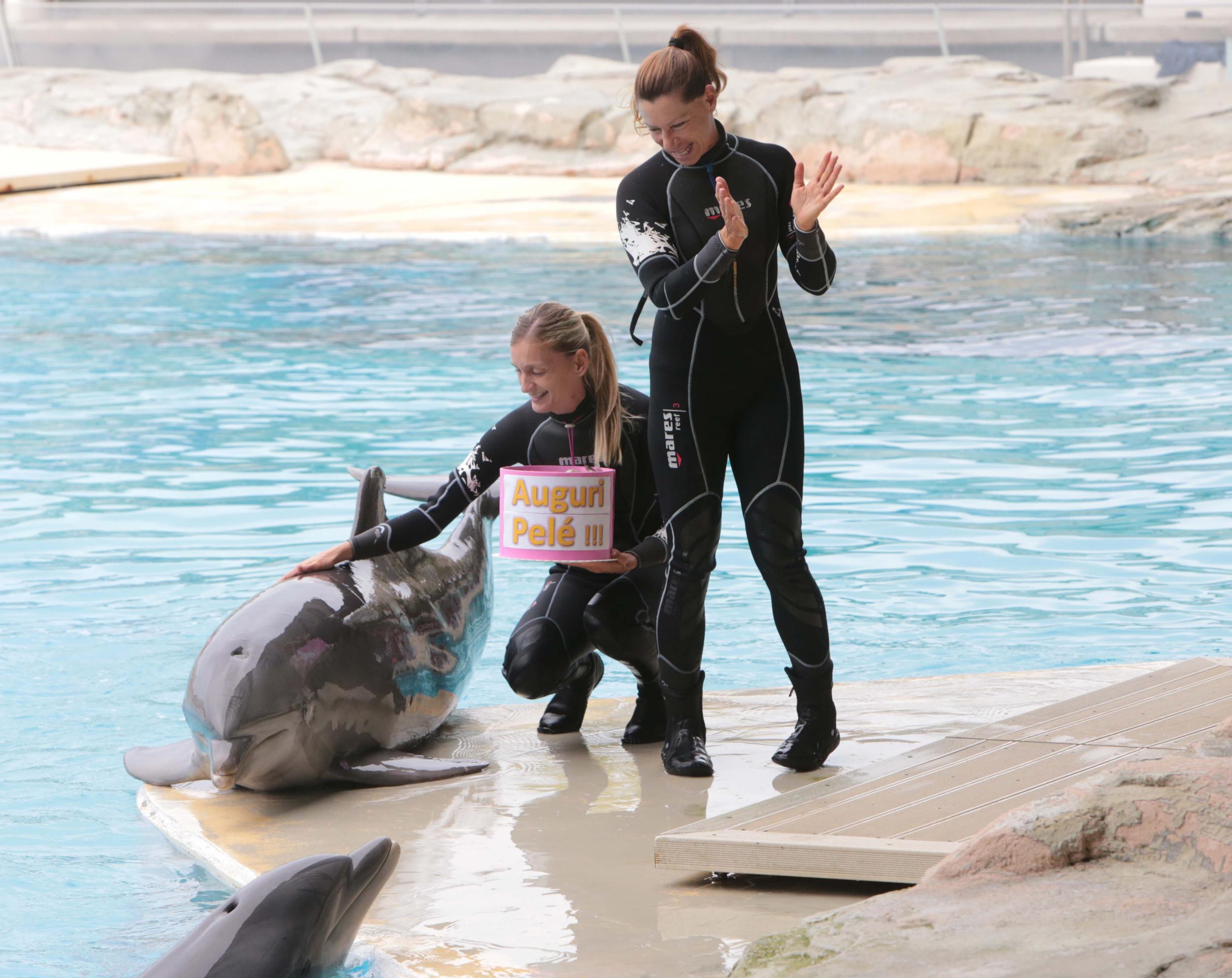 Pelé è definita da tutto lo staff del parco il mito, la colonna portante di tutta la Laguna. Ieri mattina, dopo la canzoncina di rito, è arrivata la torta, a sorpresa, direttamente dall’acqua, portata a nuoto dagli addestratori. Per lei niente crema o panna, ma gustosissime…sardine!
