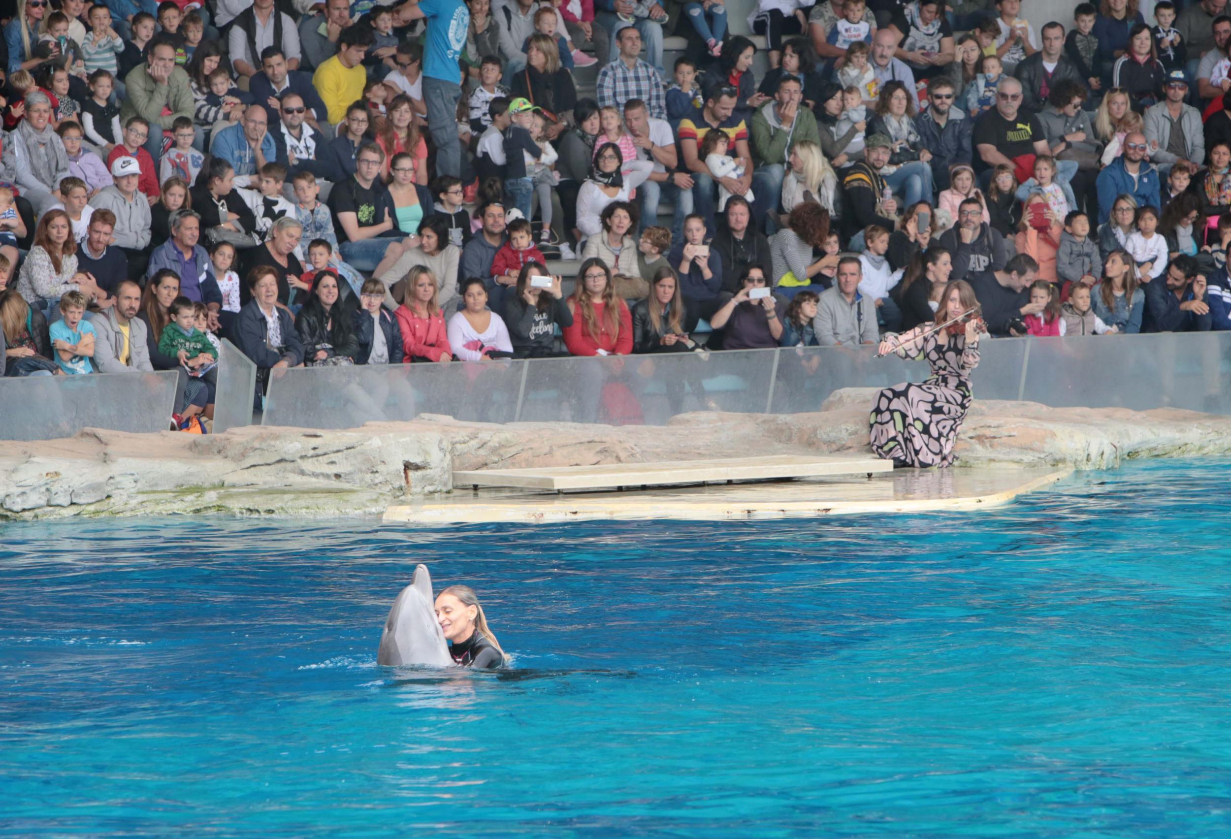 Tantissime le persone presenti nel parco, da questa mattina. Oggi si è tenuta infatti, anche la Festa di Fine Estate dell’associazione Famijia Arciunesa, ma i visitatori sono arrivati anche da fuori regione e dall’estero, appositamente per festeggiare la delfina.