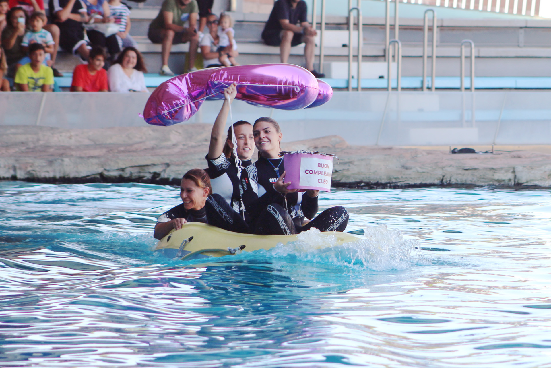 I festeggiamenti hanno visto gli addestratori portare alla mattina, per Cleo, una torta di sardine, a bordo di una canoa, con tanto di palloncini diGrabo Ballons, super colorati e pink. Nel pomeriggio la festa è andata avanti per Ulisse. Anche per lui un party coi fiocchi, con tantissimi palloncini tutti azzurri, festoni, canzoncine di rito e naturalmente una seconda torta di sardine e capelin, di cui Ulisse va ghiotto.