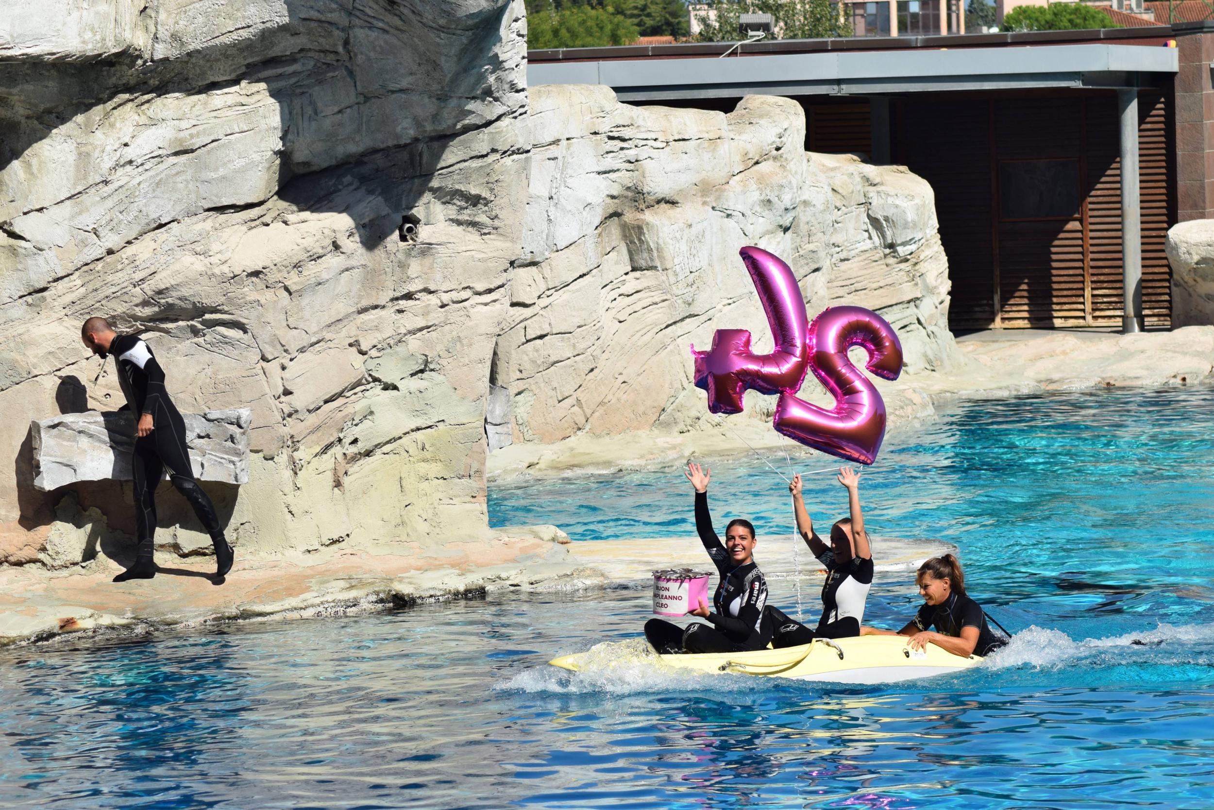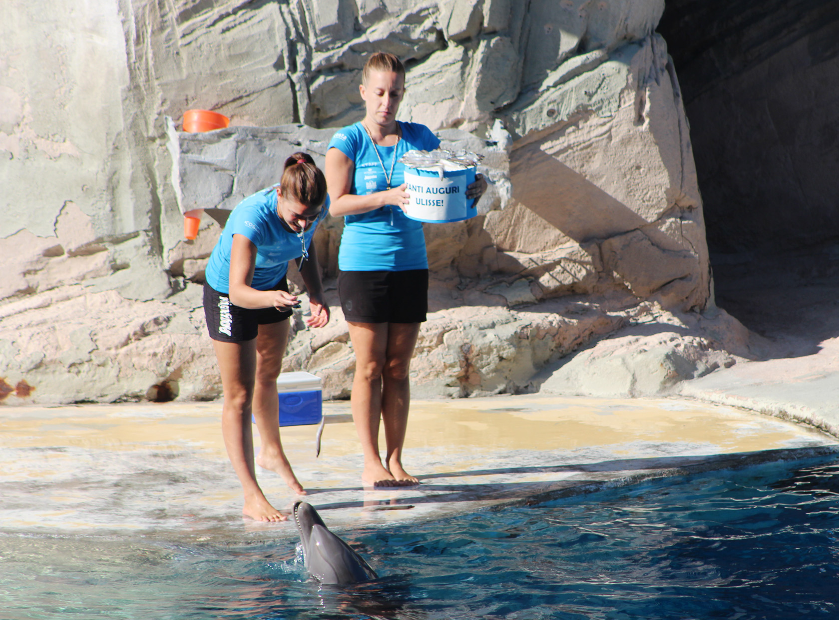 I protagonisti del party sono stati Ulisse e Cleo che hanno raggiunto rispettivamente 21 e 24 anni d’età. Ulisse è il delfino più famoso di Oltremare, nato a settembre nel 1997 da mamma Candy, oggi pesa 214 kg. Cleo è la più timida del gruppo delle femmine, pesa 180 kg ed è nata sempre a settembre ma del 1994.