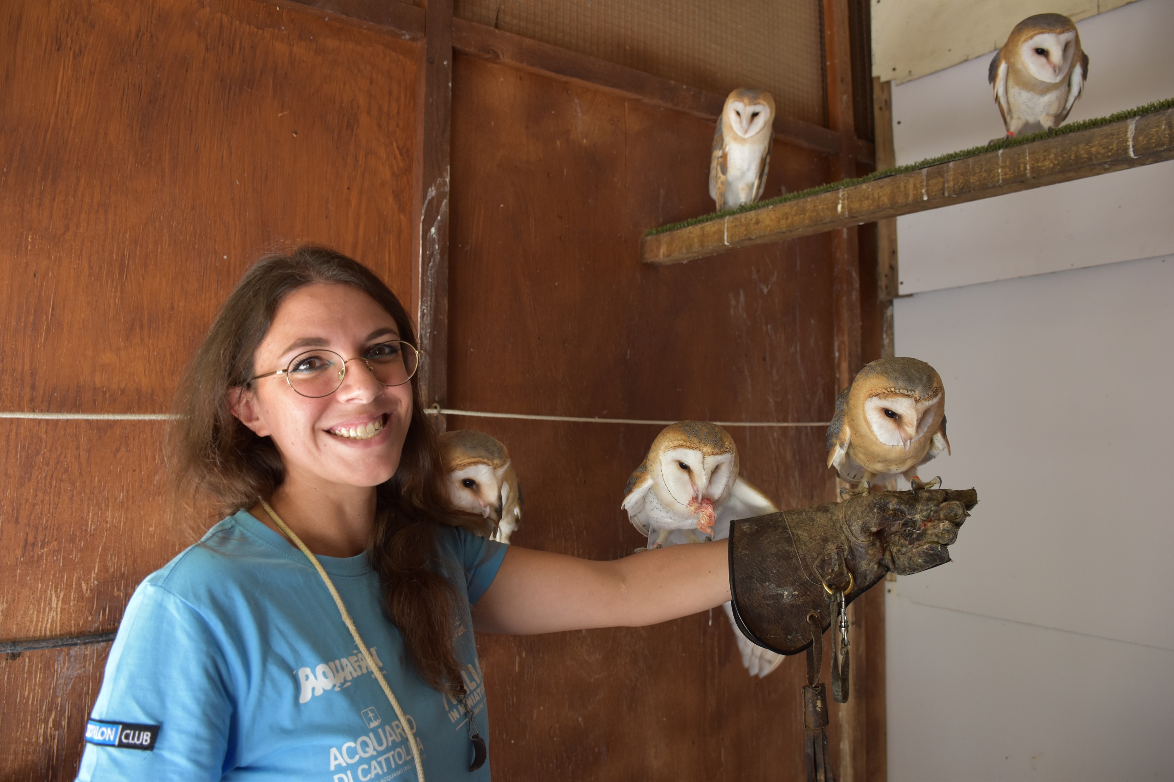 I piccoli di barbagianni di Oltremare a Riccione crescono a vista d’occhio e rallegrano ogni giorno lo staff che li ha seguiti nella crescita quotidiana. Oggi molti di loro sono già tra i simpatici protagonisti del Volo dei Rapaci e il pubblico può conoscerli da vicino. I più piccolini stanno iniziando ora a partecipare alle prove di falconeria e potranno entrare in arena, davanti al pubblico, a fine settembre.